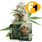 Mrs. White is an autoflowering F1 hybrid (White Widow x Super Silver Haze) with 25-30% THC. This strain offers a citrusy, earthy flavor with woody, spicy notes, delivering uplifting, creative, and balanced effects. It’s simple to grow indoors or outdoors, reaching 55-75 cm, with a full cycle from germination to harvest in 70-75 days.